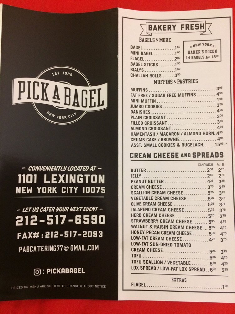 Welcome to Pick A Bagel New York, a delightful gem located at 1101 Lexington Ave that serves authentic New York-style bagels. This eatery is known for its extensive bagel menu, featuring classic options like Whole Wheat, Garlic, and Everything bagels, all priced at just $2.99. Their bagel breakfast sandwiches are a must-try, showcasing a creative variety such as the Turkey Bacon, Egg, & Cheese Sandwich, and the Pastrami, Egg, & Cheese, each available for $10.99.